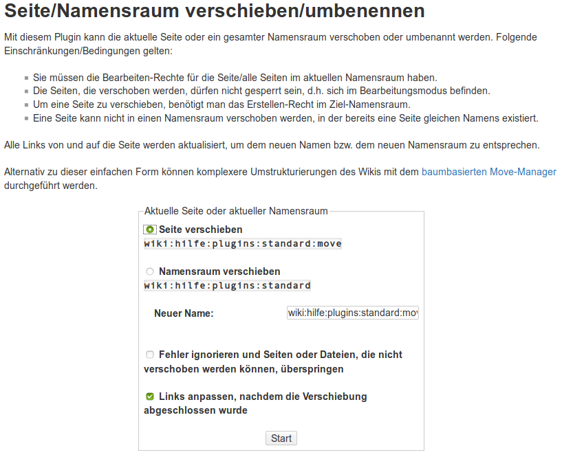 move-Plugin: Wiki-Seiten und Medien umbenennen oder in andere Namensräume verschieben