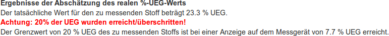 Nach einem Klick auf die Schaltfläche „tatsächliche % UEG abschätzen“ werden die Berechnungsergebnisse angezeigt: