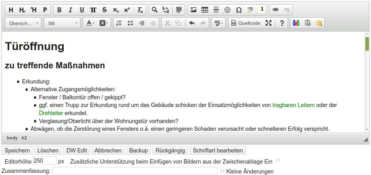 - Kopierten Text aus Microsoft Word einfügen. Der Text wird soweit wie möglich in die Möglichkeiten des Wiki-Codes überführt, allerdings können verständlicherweise nicht alle Funktionen aus Word in das Wiki übernommen werden.