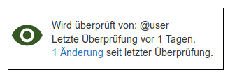 Auf einer Seite für die eine Überprüfung angelegt wurde, wird dies folgendermaßen dargestellt: