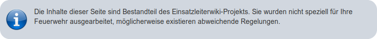 Eine Alternative, um das Einsatzleiterwiki mit allen Inhalten trotzdem einsetzen zu können, ist eine Kennzeichnung auf den Seiten, die nicht im lokalen Bereich liegen. Diese kann etwa so aussehen: