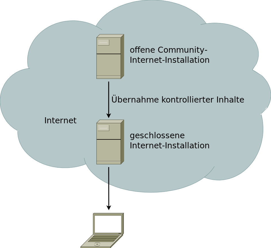 Der Aufbau eines solchen Systems ist weniger kompliziert als es wahrscheinlich auf den ersten Blick scheint, es stellt sich nur die Frage, welches die beste Umsetzung für die Synchronisation der Inhalte ist. Mehrere Möglichkeiten dafür sind auf der Seite Synchronisation der Wiki-Daten vorgestellt.